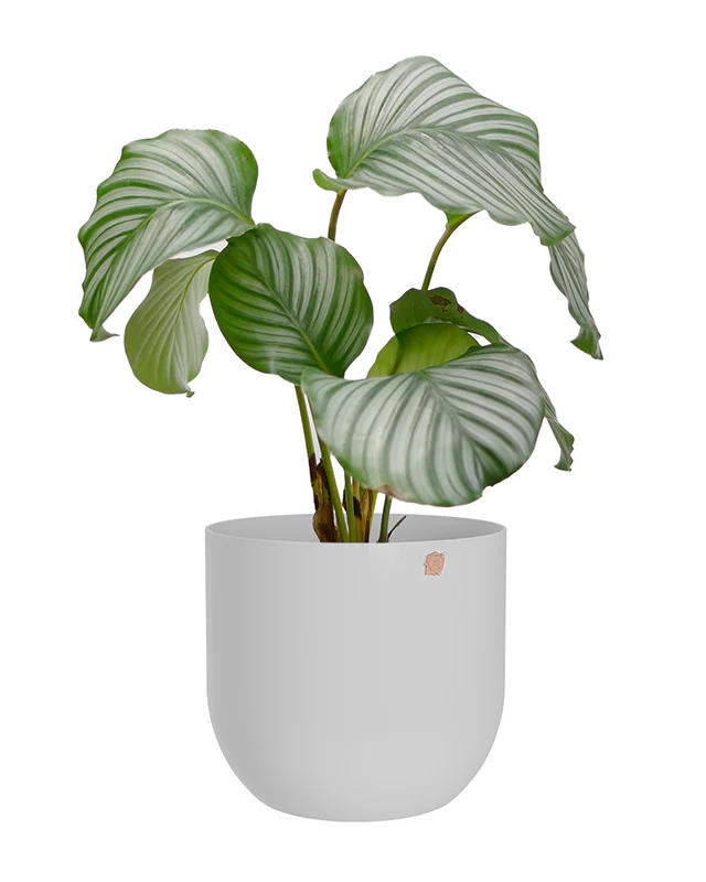 Seu desenho limpo e bem acabado veste o pote de plástico da planta, segurando o excesso de água das regas sem deixar passar umidade para a superfície em que está apoiado.