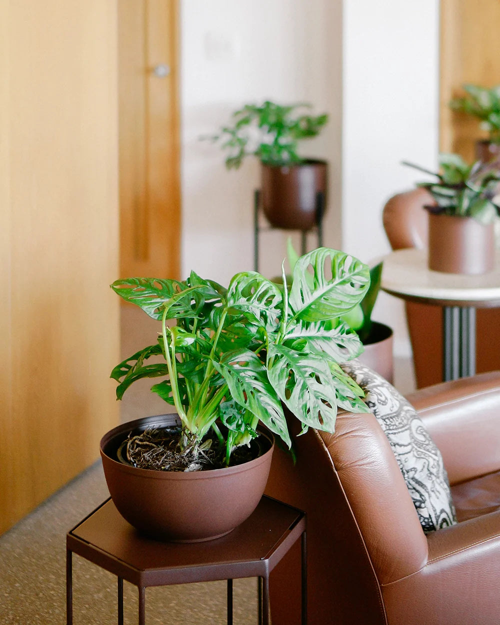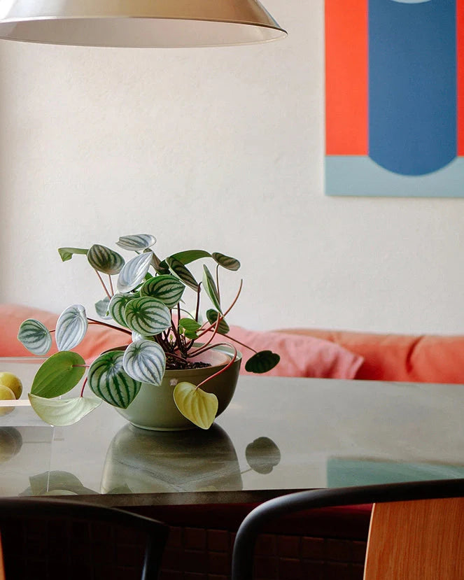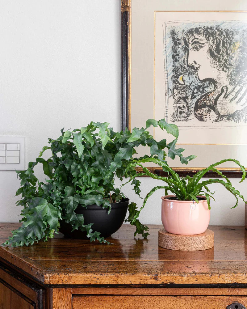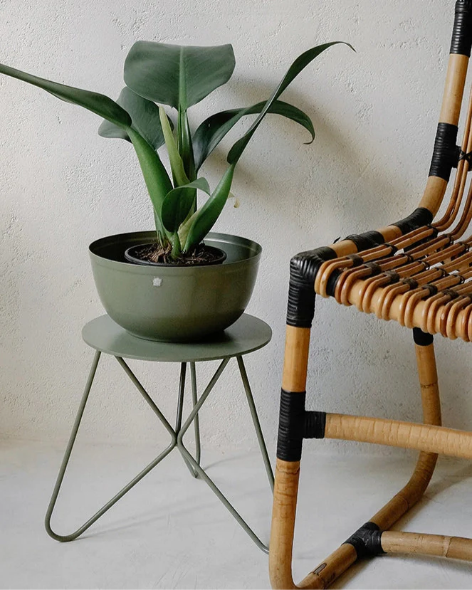 Seu desenho limpo e bem acabado veste o pote de plástico da planta, segurando o excesso de água das regas sem deixar passar umidade para a superfície em que está apoiado.