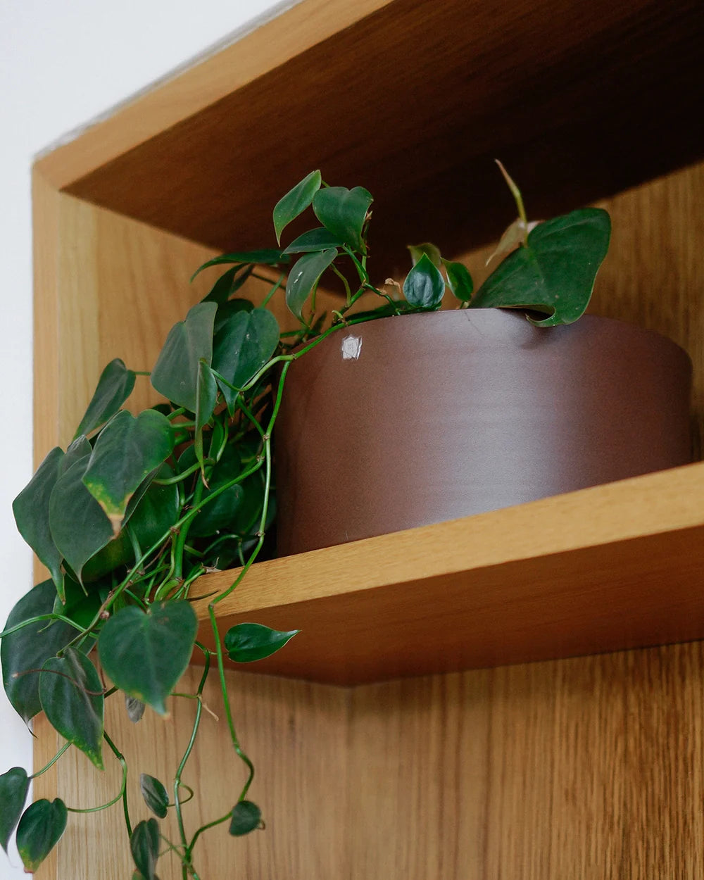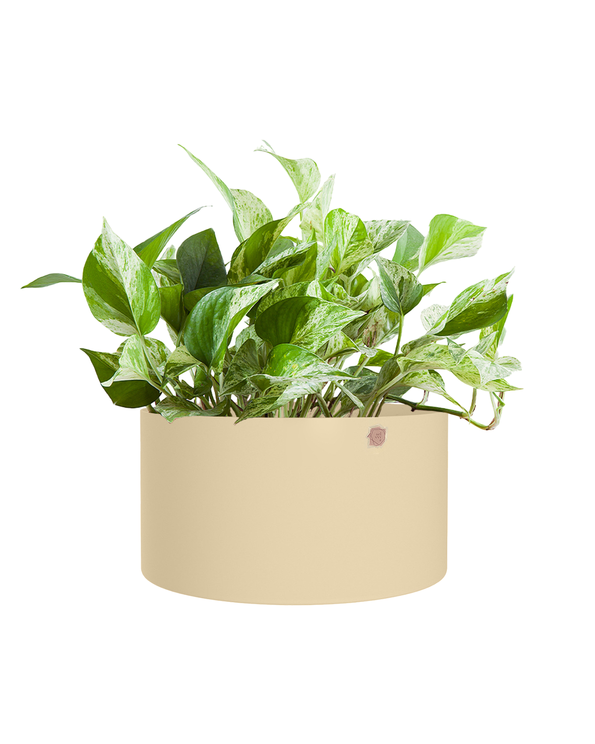 Seu desenho limpo e bem acabado veste o pote de plástico da planta, segurando o excesso de água das regas sem deixar passar umidade para a superfície em que está apoiado.