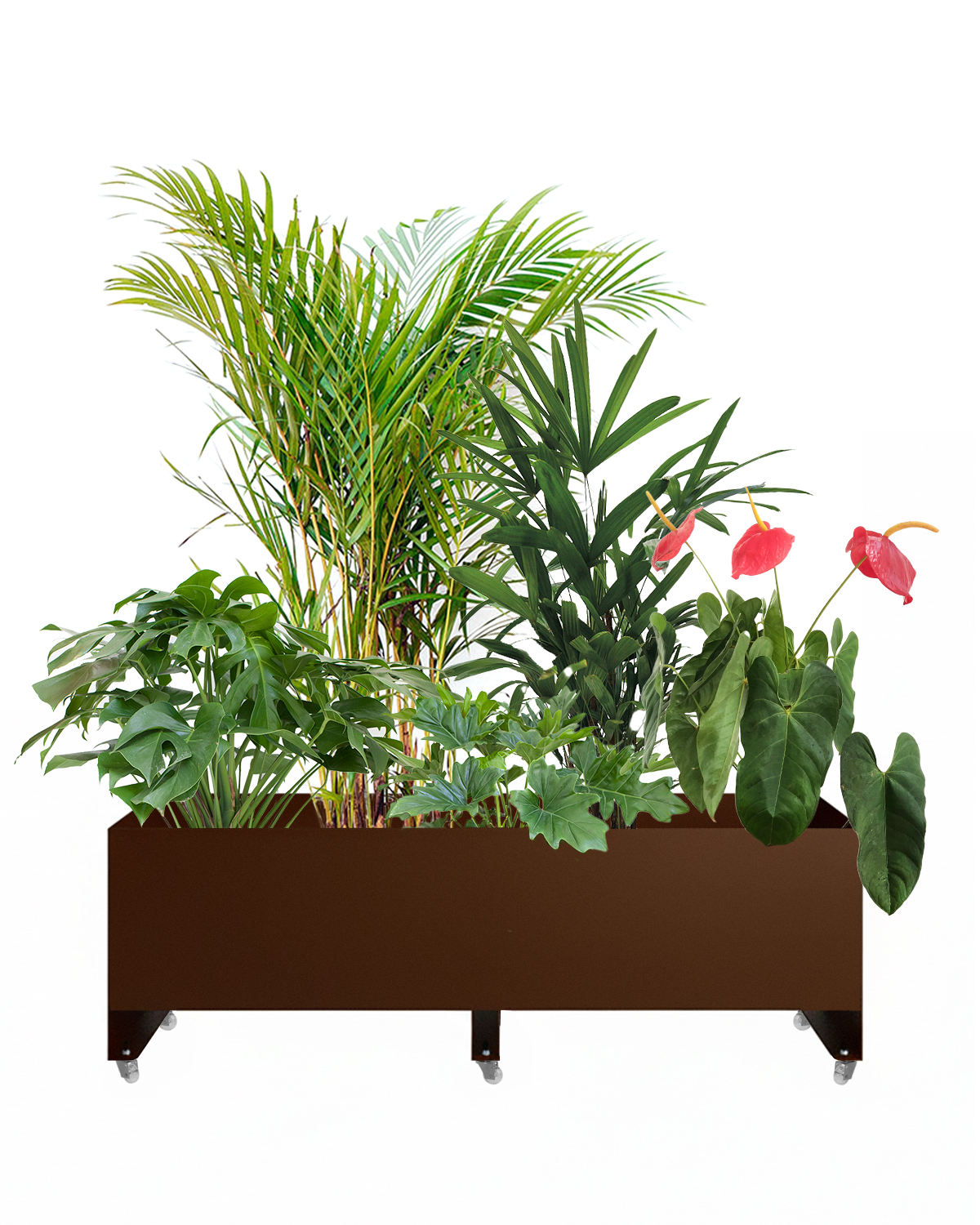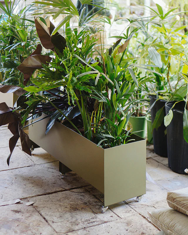 Esta jardineira cachepô sobre rodízios é pensada para agrupar plantas de maior porte, criando um jardim exuberante, que pode ser facilmente deslocado pelo espaço. Desenhado pela Selvvva e produzido no Brasil.