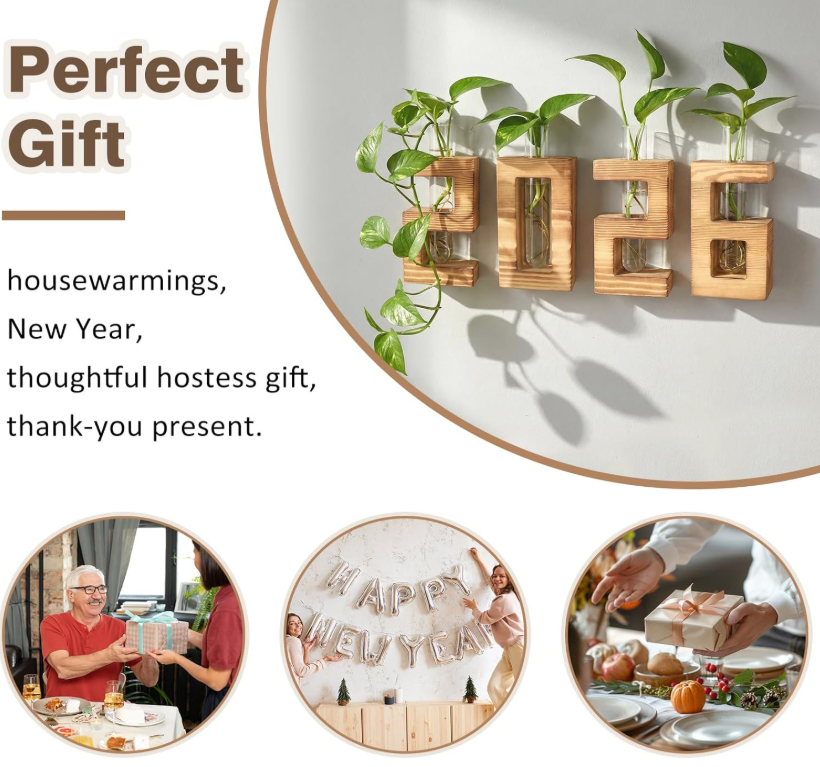 The set of four features distinct geometric shapes, each carved in warm, sun-kissed wood that catches the light and draws the eye. Perfect for propagation, single stems, or minimalist displays, these wall vases nurture new growth while adding a modern, artistic accent to any room.
